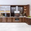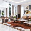 Căn biệt thự được bài trí những góc nội thất với chi tiết bo tròn tạo sự nổi bật đặc biệt cho chất liệu gỗ óc chó tự nhiên, sự hiện diện của BST DG Bespoke Đồng Gia mang đến.